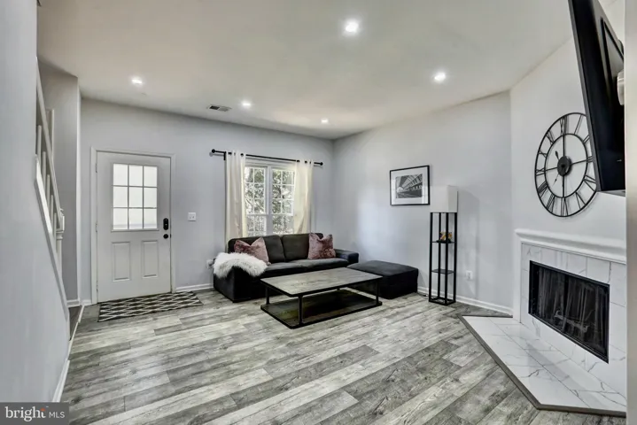 The main level welcomes you with fresh flooring, new paint, and abundant natural light. The living room serves as the heart of the home, featuring a cozy wood-burning fireplace that adds warmth and character. The beautifully redesigned kitchen offers sleek cabinetry, stainless steel appliances, quartz countertops, and a bright dining area that makes both everyday meals and entertaining effortless. A renovated half bath and convenient laundry area complete this thoughtfully updated level.