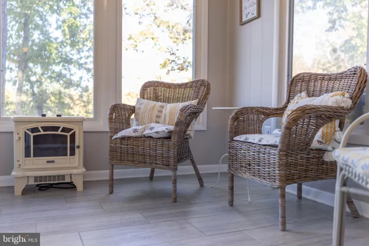 The exterior welcomes you with a serene setting and easy access to nature and recreation. A large deck extends from the main level, offering beautiful views of the driving range and creek. Inside, the main floor high ceilings in the open-concept kitchen and living room, anchored by a striking stone fireplace. The kitchen island seats six (6), while the adjacent dining area accommodates eight (8). Just off the dining room, a cozy sunroom and a bright office with a long window seat provide peaceful retreats and direct access to the deck. Two bedrooms and a full bathroom complete the main level.