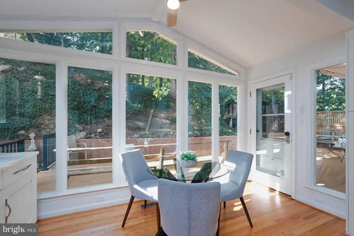 * Nestled among 80 foot trees, an enclosed, tree-lined sunroom that opens on three sides