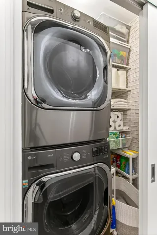 The primary suite is your own retreat featuring a custom walk-in closet and a spa-inspired bath with a granite-topped vanity, sumptuous soaking tub, frameless ultra shower, and luxurious tile accents. Three additional bedrooms, each filled with natural light and finished with hardwood floors, share a beautifully appointed hall bath updated to perfection. A laundry closet with modern stackable machines and built-in shelving adds everyday convenience, while generous storage throughout ensures everything has its place.