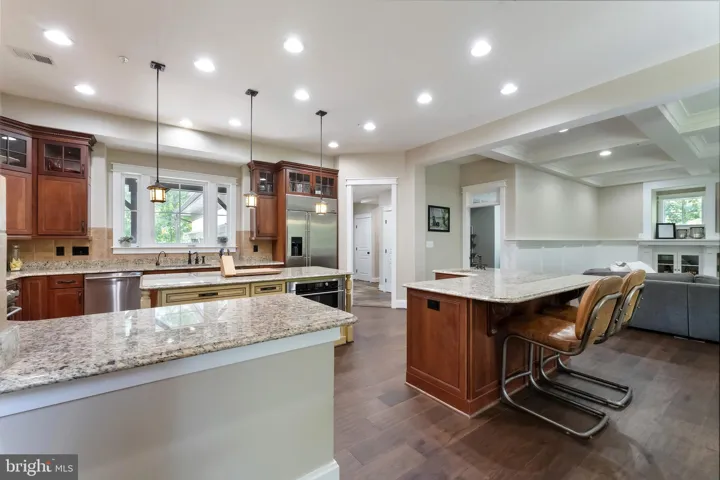 Nestled within the prestigious Camp Glenkirk Saranac community, this exquisite Craftsman-style residence, built in 2007 and thoughtfully renovated in 2020/2021, offers an unparalleled blend of luxury and comfort. Spanning an impressive 7,566 square feet, this detached home is a sanctuary of sophistication, designed for those who appreciate the finer things in life. As you step inside, you are greeted by an expansive open floor plan that seamlessly integrates living spaces, adorned with rich new engineered hardwood and slate flooring. The gourmet kitchen is a culinary enthusiast’s dream, featuring upgraded countertops, 2 spacious islands, and high-end appliances, including a built-in microwave, chef-worthy down-draft range, 2 dishwashers, and a prep sink in addition to the main sink. The upper levels boast six generously sized bedrooms, each designed with comfort in mind, and six luxurious bathrooms. The primary suite is CUSTOM and unlike any other Colden model in the neighborhood offering a spa-like experience with a dual water closets, corner soaking tub, dual vanities, a dual walk-in shower, and walk-in closet. Additional interior features such as upgraded millwork including crown molding and chair rail, recessed lighting, and built-ins- all of which enhance the home’s refined aesthetic. The basement is outfitted for multi-generational living or continuing your entertaining with nearly 2000 finished square feet, a full renovation completed in 2021. You’ll find a custom kitchenette with bar and a full bath, along with additional laundry facilities. Step outside to discover a meticulously landscaped lot of nearly half an acre, offering a private retreat that backs to serene wooded areas and open common spaces. The extensive hardscape, complete with stone retaining walls and outdoor lighting, creates an inviting atmosphere for entertaining. Enjoy al fresco dining on the patio or screened-in porch, or unwind in the tranquility of your secluded rear yard with built-in stone fireplace, where the sounds of a nearby stream add to the ambiance. The community amenities elevate the lifestyle further, featuring a clubhouse, outdoor pool, jogging paths, and picnic areas, all within a secure, gated environment. With an attached oversized garage accommodating three vehicles and an asphalt driveway, convenience is paramount. This property is not just a home; it is a lifestyle choice, offering a harmonious blend of luxury, privacy, and community. Experience the beauty of suburban living with the convenience of modern amenities, all while surrounded by nature’s splendor. Embrace the exclusive lifestyle that awaits in this remarkable residence.