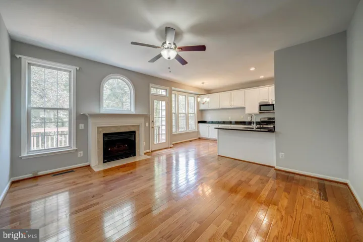 This bright, updated townhome with a two-car garage offers both comfort and convenience. The main level features hardwood floors, a formal living and dining room, and an open kitchen with white cabinets, granite countertops, and stainless steel appliances. The large owner’s suite boasts vaulted ceilings, a walk-in closet, and a luxurious bath with a Jacuzzi tub. Step outside to a private deck overlooking wooded parkland.