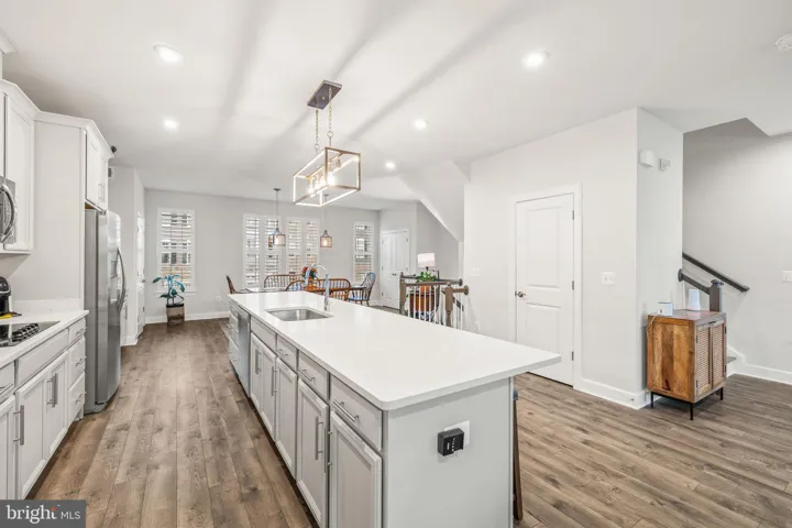 The main level showcases an open-concept design with a bright dining area, a spacious living room, and a generous pantry—all enhanced by elegant LVP flooring and plantation window treatments throughout the home. The gourmet kitchen is a chef’s dream, boasting a quartz island, stylish backsplash, and sleek stainless steel appliances. Step out onto the deck just off the living room—perfect for relaxing or entertaining.