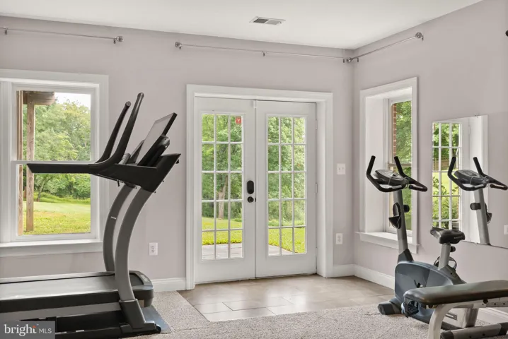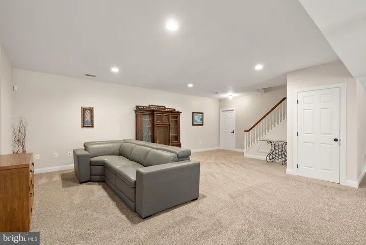 The finished walk-out lower level expands the living space with a sixth legal bedroom, full bath, gym, media and game areas, a safe room, and a flexible space ideal for a studio or second office.
