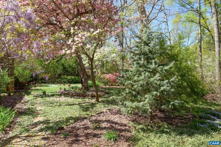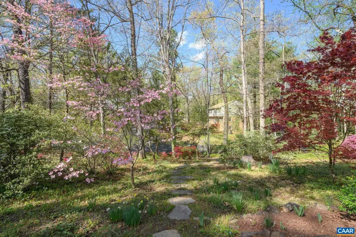 Mid-century modern classic nestled in a natural wooded setting, surrounded by mature landscaped grounds. The two-level design is both classic and flexible, providing privacy and garden views through its large signature windows. Native shrubs, ground cover, and perennials seamlessly integrate the inside out. The first floor boasts a semi-open layout with gleaming hardwood floors and a great flow between the living and dining rooms, a tiled sunroom, and a kitchen equipped with quartz countertops and an oversized pantry. This level includes 2 to 3 bedrooms and two full baths. Terrace level with large open family room and second fireplace, fourth bedroom, third full bathroom, utility room, and garage. The spectacular yard features patios, a deck, and natural walking paths, making it ideal for birdwatching, entertaining, or simply taking in the seasons?conveniently located minutes to Barracks Road Shopping, Downtown, and Schools.,Fireplace in Family Room,Fireplace in Living Room