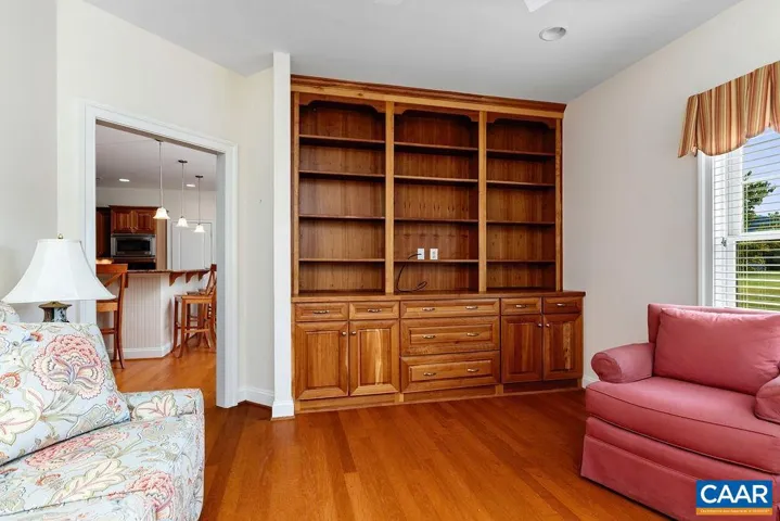 This is the only single family home in the Rosewood Community, this home was built with quality features throughout, and designed carefully for maximum accessibility and includes ADA compliant features. Beautiful stonework greets you at the arched entry door, formal living room with custom woodwork. Gourmet kitchen open to the dining room should please the most demanding cook, gas cooktop with water supply, wall ovens, beautiful cherry cabinets and warm granite counters. There is a pantry for storage. The large and bright family room has a propane gas fireplace and custom shelving and bookcase and a built in TV cabinet. The library has beautiful cherry cabinets and shelving. The main floor master suite is very private and just down the hall from the kitchen. There is a guest room on the main level, and an additional guest or study on the second floor, an unfinished bonus room on the second level which could be converted into a bedroom or other uses.,Cherry Cabinets,Fireplace in Living Room