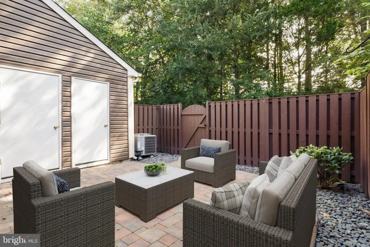 Outdoors, a private backyard with a stone-wall retainer and paver patio invites quiet evenings or weekend barbecues surrounded by lush hydrangeas and secure fencing.