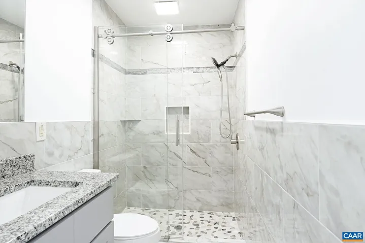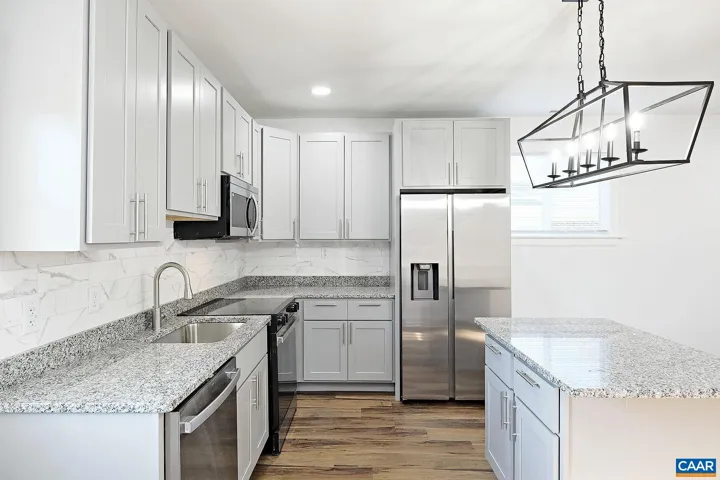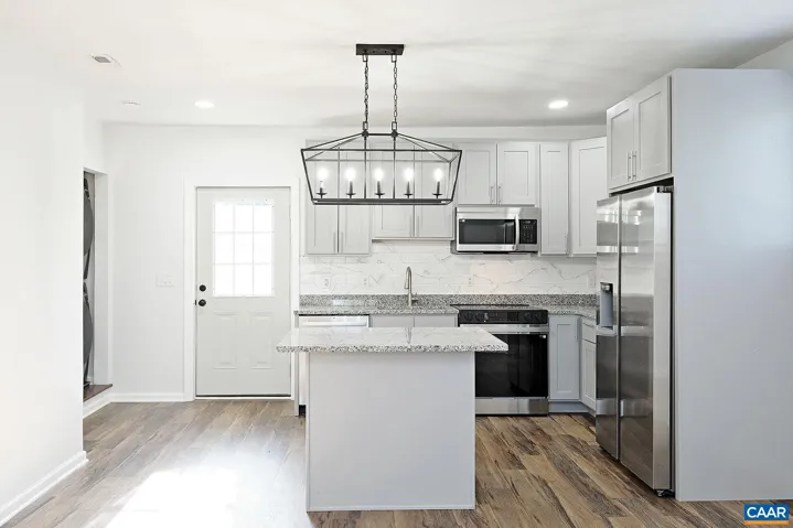 Move-in Ready! This newly renovated 3 bedroom, 3 bath downtown residence offers convenience to shopping, dining, entertainment, and the University of Virginia. Just a short drive from 5th St Station, I-64 access, outdoor recreation at Biscuit Run Park and Saunders Monticello Trail, and more! Plus, public transportation is just steps away. Step inside this 2,198 sqft home and be greeted by refinished hardwood floors that flow throughout, an open and spacious living room, a separate dining room, an eat-in galley-style kitchen with luxury vinyl plank floors, granite countertops, and high-end stainless steel appliances, and a large family room with a decorative fireplace. A primary bedroom with an ensuite full bath, and two additional bedrooms that share a custom tile bath are set along the hallway. Enjoy the convenience of an in-unit front-load washer and dryer. The garage has been converted into a beautiful studio space, ideal for an in-law suite or home office. The studio features luxury vinyl plank flooring, a fully-equipped kitchen with granite countertops and stainless steel appliances, a combined living/bedroom area, a full tile bath, and a stacked front-load washer and dryer. No pets allowed.