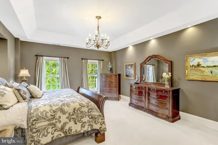 The expansive lower level is perfect for entertainment and relaxation, featuring a fireplace, a space for a game room and TV area, a wet bar, a wine room with storage for 750 bottles, an exercise room, and an additional bedroom.
