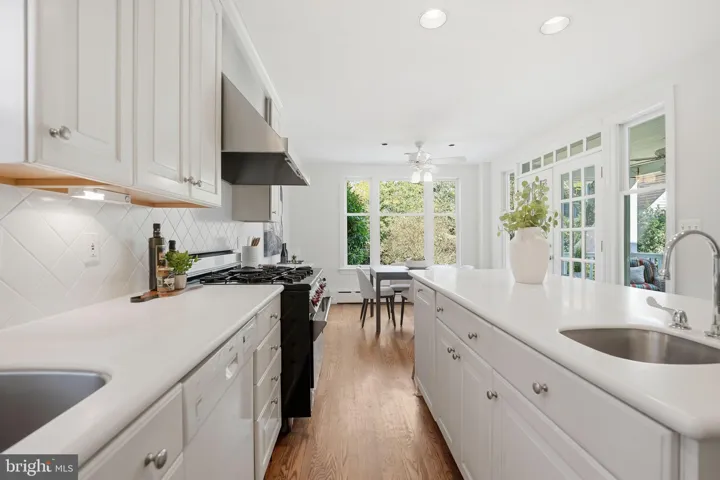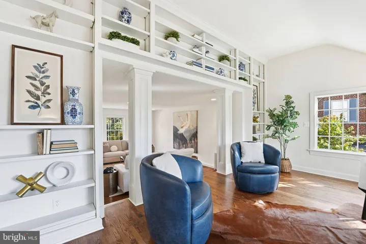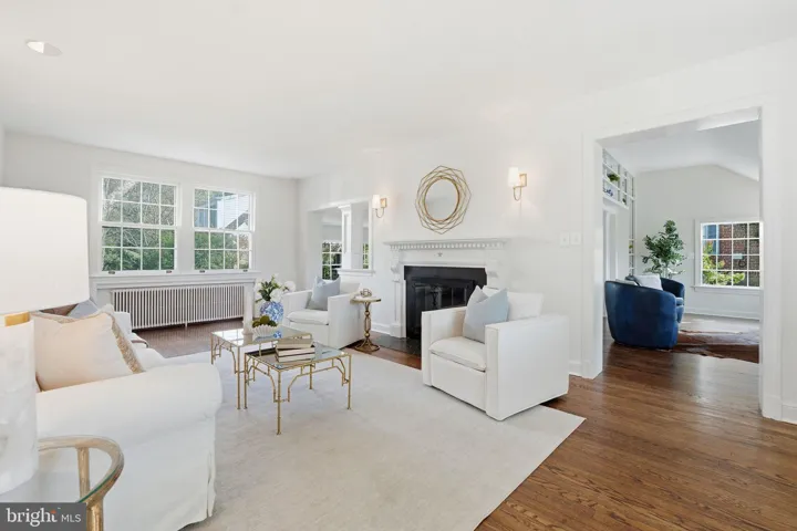 This stately Country Club Hills home sits on a 0.4-acre lot surrounded by mature trees and tranquil private spaces. It is steeped in history but lovingly maintained and improved over the years to allow for gracious living. >>> Originally built in 1937, the exquisite stone and whitewashed brick colonial was awarded a Silver Star for Design and offers over 4,000 square feet of living space, blending gracious entertaining areas with warm, comfortable living. Just a half block from the Washington Golf and Country Club, the property boasts a historic American Elm with an expansive canopy (winner of the 2010 Arlington Notable Tree Award) in the front and extensive rear grounds ideal for afternoons of barbecues and sports (soccer, badminton, volleyball and croquet) or just plain relaxing or gardening in absolute privacy. It even served at one time as the Country Club Hills preschool. >>> Inside, a beautiful formal dining room with intricate wallpaper and handcrafted molding opens to a warm, eat-in kitchen with a Sub-Zero refrigerator and other high-end appliances, island, and access to a screened porch and stone patio—perfect for gatherings or quiet reflection. The main level features an expansive sunlit living room with original mantel and gas fireplace, a charming library/office with bay window and custom built-ins, and a large family room with access to the gardens. >>> Upstairs are four spacious bedrooms and three full baths, including a serene primary suite with built-ins, window seat overlooking the backyard, and ensuite bath. A finished third level is perfect for cozy sleepovers or as a playroom or “teen suite.” >>> The lower level offers a large recreation room, bonus gym or office, laundry with cabinetry and sink, a half bath and walk-out access to the backyard and detached garage. Above the garage, a private suite with full bath serves perfectly as guest or au pair quarter or as a separate office for the WFH owner. With a circular drive, ample parking, and proximity to Georgetown, downtown DC, Reagan Airport, and fine dining, this timeless residence offers the perfect blend of historic charm with modern comfort in one of Arlington’s most coveted neighborhoods.