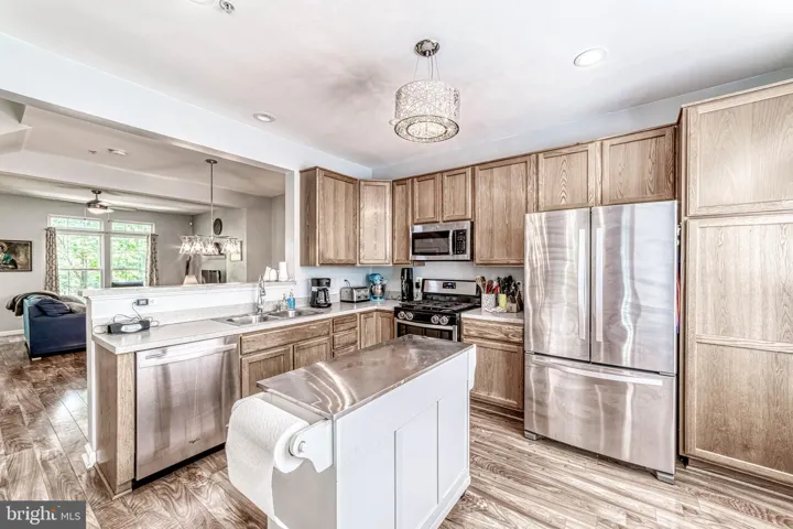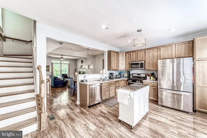 The inviting main level features a bright, open kitchen with stainless steel appliances, ample table space, and a versatile mobile island that conveys. Easy-care flooring flows throughout the home, creating a modern, low-maintenance living experience. The top-level bedroom offers flexible use as a family room, home office, or recreation space, while the primary suite includes a generous walk-in closet.