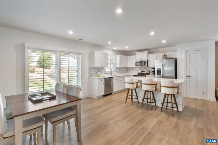 Better than new! Built in 2021, this 3-bedroom, 2-bath home offers the ease of single-level living with thoughtful upgrades throughout. The open, light-filled layout feels fresh and inviting, while the design includes features that make daily life more comfortable for everyone: zero-entry front door, wide doorways, low light switches, grab bars in all bathrooms, and comfort-height toilets. Even the garage and back patio have additional half steps for easy access. Every window has been outfitted with plantation shutters, adding both style and function. The backyard is a true retreat: fully fenced and extensively landscaped, with plenty of space for relaxing, gardening, or entertaining. The concrete patio spans the full width of the home, and 4-foot ADA-accessible walkways surround the house. This premium lot offers privacy with no neighboring homes behind, just walking trails! As a bonus, the garage includes its own mini-split heating and cooling system, perfect for hobbies, workouts, or simply keeping you comfortable year-round. With modern finishes, accessibility in mind, and upgrades already in place, this home is move-in ready and built to be enjoyed.,Quartz Counter
