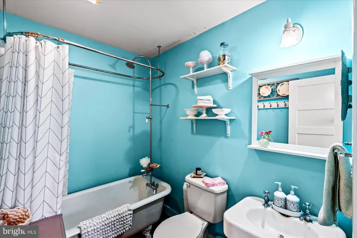 Inside, you’ll find an enclosed four-seasons porch perfect for relaxing year-round, a spacious living and dining room combination, and a cottage-style kitchen with a breakfast nook. The home also features flexible living space off the kitchen, giving you room for a home office, studio, or guest area. The primary bedroom includes an attached bath, while vintage details throughout—like crystal door handles, a porcelain sink, and a clawfoot tub—add timeless charm.