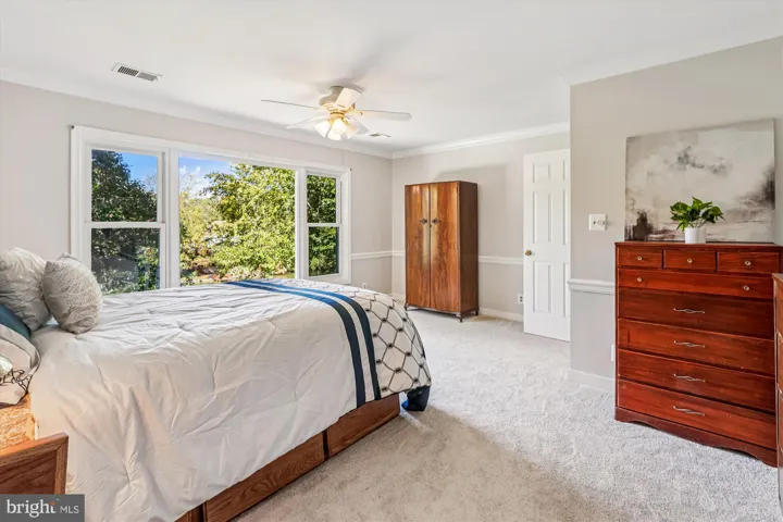 Upstairs, the LAKE-FACING PRIMARY suite is a rare treat in Montclair—offering a private sitting room with skylights and a spa-like bath with dual sinks, makeup vanity, freestanding soaking tub, and walk-in shower. Three additional spacious bedrooms share an updated bath with granite and a walk-in shower.