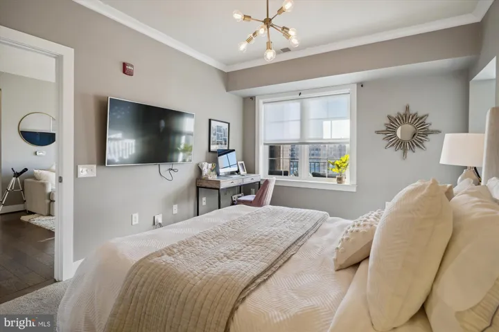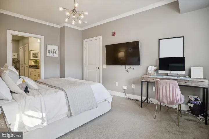 The primary suite is a true retreat, boasting a large bedroom and an adjacent, sun-filled den—ideal for a dedicated home office or fitness space. Unwind in the Spa-Inspired Primary Bath with its large walk-in shower, built-in bench, dual vanity sinks, and stunning custom built-in cabinetry. Organization is effortless with the expanded walk-in closet featuring designer custom-built ins and shelving. The unit includes two reserved, tandem parking spots in the secured garage. Your new home is centrally located: a quick walk to Pan Am Shopping Center and minutes from The Mosaic District, Town of Vienna, and Tysons.