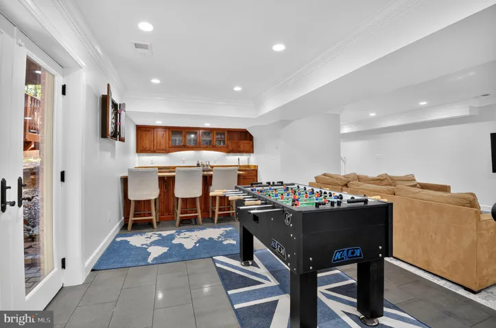 The lower level is designed for entertaining, boasting a newly renovated recreation room with designer gas fireplace, a custom bar with Sub-Zero fridge and wine cooler, an additional entertainment area with your own luxurious 4 person infrared sauna with red light therapy (conveys!), and room for additional storage.