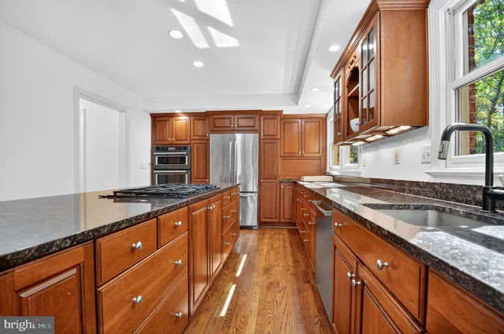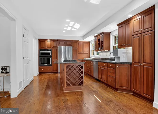 Nestled on nearly an acre of beautiful private park-like grounds surrounded by mature trees and backing to park land, this stunning 5-bedroom, 3 full and 2 half bath home w/hardwood floors throughout the main and upper levels offers the perfect blend of comfort, sophistication, privacy and natural beauty. Thoughtfully renovated and expanded over the years—including an impressive primary suite and newly renovated lower level—this residence reflects $100,000 in recent upgrades that elevate both form and function. Improvements include the renovated lower level, new powder room w/RH vanity and fixtures, new toilets throughout, new high efficiency heat pump, new UV light air purifier for the upstairs heating unit, new washer and dryer, new Level 2 EV charger in the large two car garage w/doubled capacity electrical panel, new recessed lighting, freshly painted with low VOC Benjamin Moore paint, updated landscaping with outdoor lighting and more.