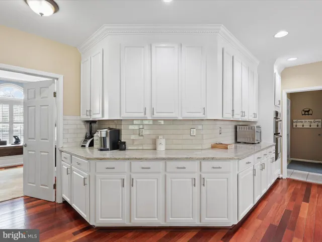 Step inside to find spacious, light-filled living areas with modern updates throughout. The gourmet kitchen boasts granite countertops, white cabinets, and stainless-steel appliances, opening seamlessly to the dining and family rooms—perfect for entertaining. Gleaming hardwood floors, elegant fixtures, and designer touches elevate every corner.