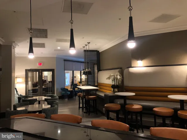 Extensive onsite amenities include: business center, fitness center, sauna, fire pit, outdoor pool, lounge with a fireplace, game room, and indoor common rooms available for events and work space and with full kitchen and bar. Owner pays for condo fee which includes: concierge/24 hour front desk, onsite resident manager and semiannual HVAC servicing. Utilities are Dominion Electric and Comcast (paid by tenant). $400 non-refundable move-in fee and $250 refundable elevator use fee.