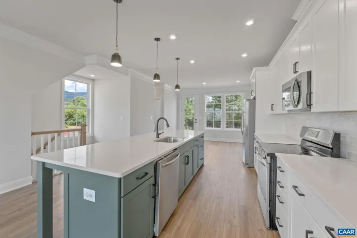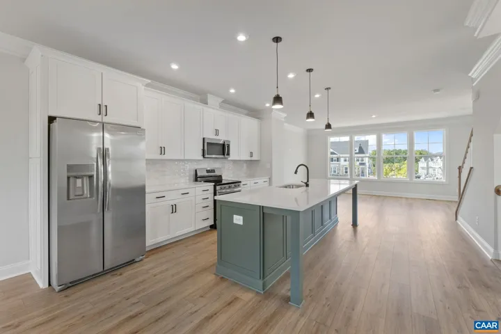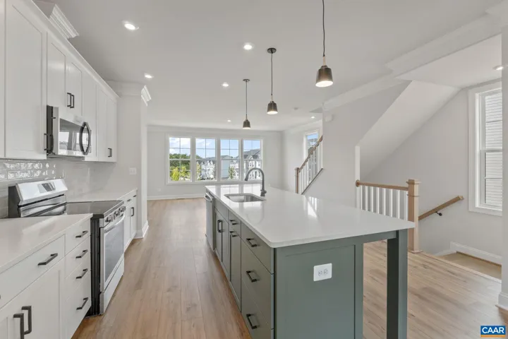 Just completed – actual photos! This end unit Poplar II townhome in Glenbrook offers a comfortable, farmhouse-style layout surrounded by mountain views, green spaces, and walking trails?all within easy reach of downtown Crozet. This interior unit features a bright kitchen with plenty of prep room and a walk-in pantry, a spacious rear deck off the main level, and a first-floor bedroom with its own full bath that works well for guests or a home office. You’ll find thoughtful touches throughout, like oak stairs, solid core interior doors, wood shelving, and an energy-efficient furnace. A two-car garage is included for added convenience. Community perks include a nearby path to Crozet Park and future access to downtown via a planned trail.,Painted Cabinets,Quartz Counter,White Cabinets