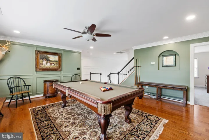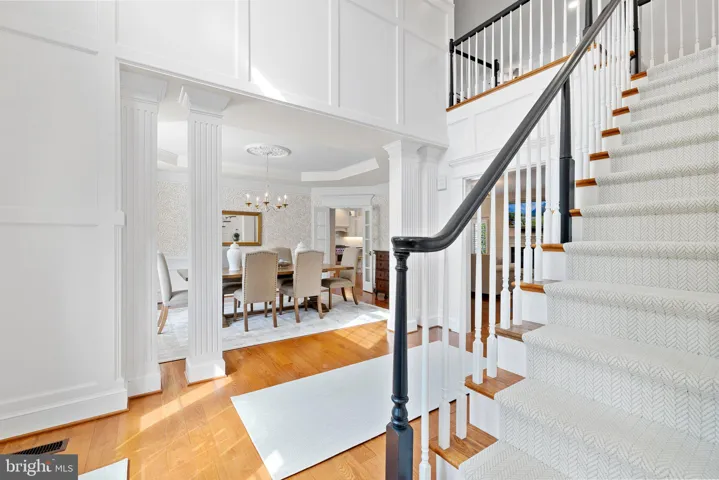 Meticulously maintained and full of custom details, this 5-bedroom, 4.5-bath home sits on a private, park-like 0.52-acre lot backing to a neighborhood walking trail. A grand two-story foyer with custom millwork by renowned designer John Crank (The 1717 Design Group) sets the tone for the craftsmanship throughout. The main level features a formal dining room with tray ceiling, crown molding, wainscoting, Serena & Lily wallpaper, and French doors, along with a versatile music room or study. The open-concept family room, kitchen, and breakfast nook provide an ideal space for entertaining. The remodeled kitchen (2020) includes custom cabinetry, granite countertops, exotic natural stone island, and a gourmet 6-burner gas range, opening to a family room with gas fireplace. The spacious first floor primary suite offers new wood trim accents, updated lighting, and a luxurious renovated ensuite (2020) with heated floors, soaking tub, tiled walk-in shower, & dual walk-in closets. Two additional bedrooms share a Jack-and-Jill bath, and a third (currently an office) has access to a beautiful fully renovated hall bath (2024). The billiards loft (2024) with custom millwork adds a stylish gathering space, while the private third-floor guest suite (currently being used as a gym) features new LVP flooring (2024) and a full bath. Add’l upgrades include: NEW HVAC systems (2023), Bedroom carpet (2023), Staircase runner & custom rugs (2024), Upgraded lighting & plumbing fixtures (2024), 3-car garage with painted walls/floors (2024) and fresh paint throughout the interior (2024). The fenced backyard features a two-tiered deck and patio with roll out awning just perfect for entertaining. Located across from Swallowtail Park playground, this home offers timeless design, modern comfort, and unbeatable location. Founders Bridge is home to the renowned Independence Golf Club and offers its residence resort like amenities including tennis courts, pools, clubhouse, walking trials, Tavern 19 Bar & Grill, concerts throughout the year & more!