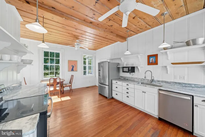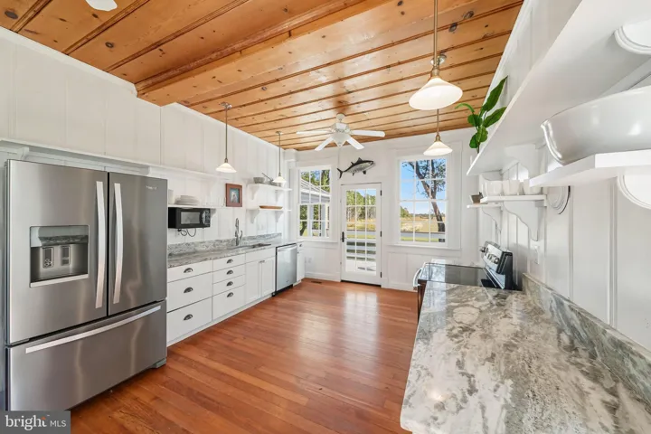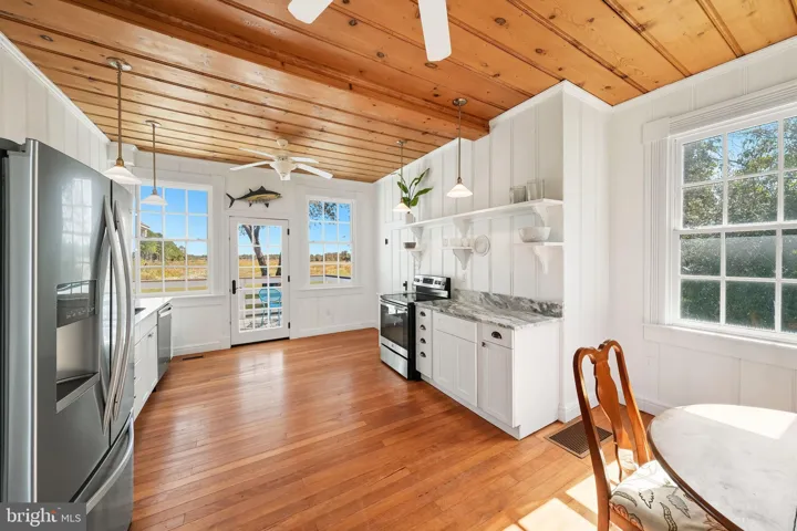 This turnkey, rental-ready waterfront retreat combines modernized amenities with historic character: a newly renovated kitchen with new appliances and granite countertops (2023), 10-foot ceilings, built-in bookcases, two fireplaces, and preserved wide-plank loblolly pine floors. Comfort and efficiency are ensured by a brand-new 2-zone HVAC system (2023) and a fully renovated lower level. The setting shines with a tin roof, mature landscaping, and a coveted location, steps from Smith Point Marina, and the personal dock on Rock Hole Creek awaits. A deeded boat slip on Rock Hole Cove further boosts occupancy by appealing to boating enthusiasts and encouraging longer stays, positioning the property for strong short-term rental performance, boutique vacation bookings, and high-demand weekend getaways.