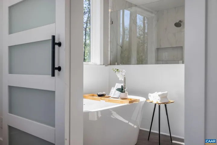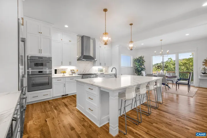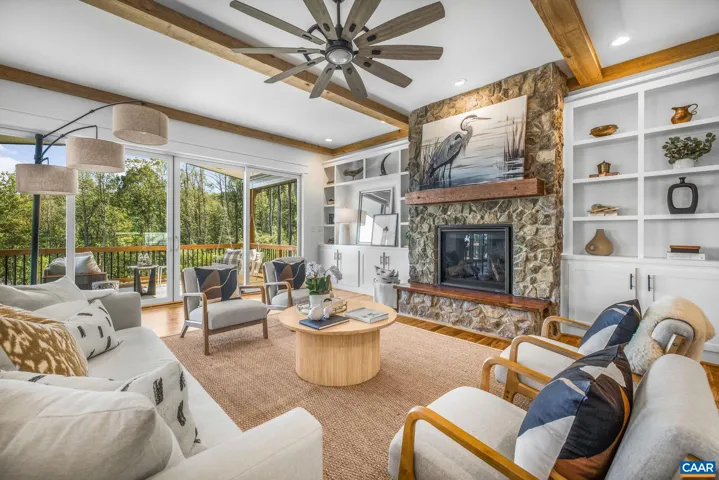 Sweeping Blue Ridge panoramas take center stage throughout this artfully designed Ashcroft home. The soaring entry balances rustic warmth with refined scale, introducing the home?s signature blend of casual comfort and elevated design. The expansive Great Room with 10 foot ceilings showcases a dramatic stone fireplace flanked by custom cabinetry and opens to a chef?s kitchen designed for both beauty and function, with a statement island, sleek quartz finishes that carry from countertop to full-height backsplash.The main level primary suite exudes quiet luxury, its spa-like bath appointed with a freestanding soaking tub, custom double vanity, and elegantly tiled shower. The upper level features two spacious en suite bedrooms and a comfortable loft, while a separate Office/Flex Suite, with private stair access, full bath, and kitchenette, offers an ideal space for guests, remote work, or quiet retreat. The terrace level is designed for relaxed entertaining, featuring a spacious gathering area with a custom-tiled fireplace, full bar, fourth bedroom and bath, and a walk-out patio that opens to a remarkably level backyard and sweeping mountain vistas. Experience elevated living just 15 minutes from Downtown Charlottesville!,Glass Front Cabinets,Maple Cabinets,Quartz Counter,White Cabinets,Fireplace in Family Room,Fireplace in Living Room