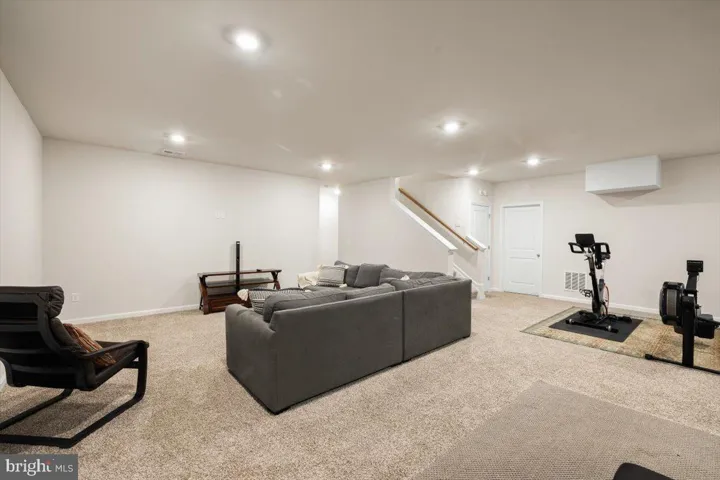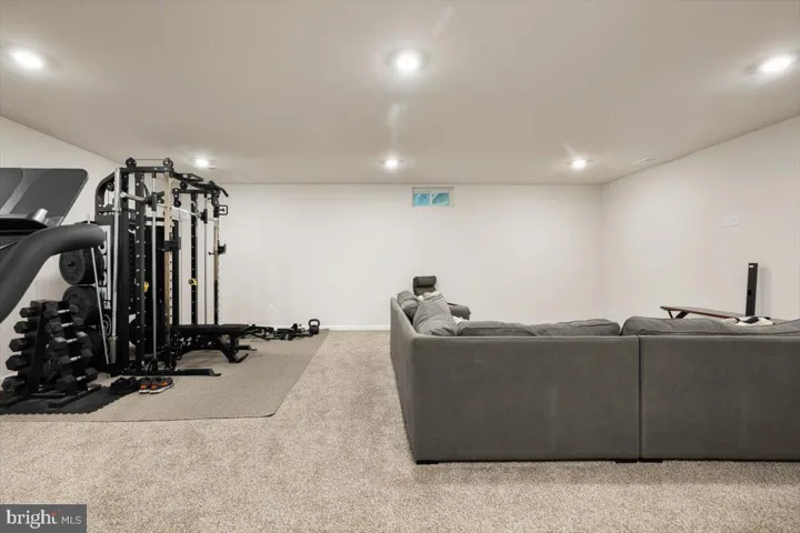 The finished basement expands the living space with a large recreation room, fitness area, full bath, and an additional bedroom—ideal for guests or extended living arrangements.