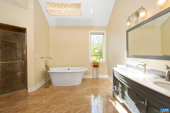 This beautiful modern home in the Godalming neighborhood offers a distinctive layout that sets it apart from others. Upon entering, you are greeted by a welcoming foyer with office space, making this home not just stylish but also functional. The main level offers convenient living with three bedrooms and two and a half baths all on one floor, while an additional bedroom and full bath are located on the terrace level. The exquisite kitchen features a combination of quartz and leathered granite countertops, seamlessly flowing into a spacious kitchen-dining-living area with soaring cathedral ceilings and elegant porcelain tile flooring. The main level is accented by stunning mahogany engineered hardwood floors, and the living room includes a cozy fireplace, perfect for relaxation. The terrace level provides a versatile second recreational space that can serve as a home gym or a theater room. With its impressive curb appeal and large covered front porch, this home invites you to enjoy the outdoors. Located just 29 minutes from the University of Virginia, 20 minutes from Shenandoah National Park, and only 4 minutes from Walmart, Lowe?s, and Starbucks, this property perfectly combines modern living with convenience.,Granite Counter,Painted Cabinets,Quartz Counter,Fireplace in Living Room