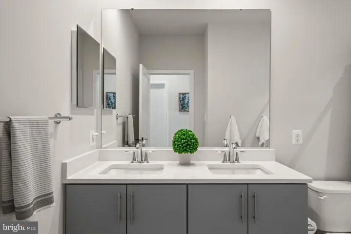 Upper level offers a spacious primary bedroom with a sitting area and an opulent spa-like bath with a huge shower, two vanities, two large walk-in closets, and a dressing area! Three additional bedrooms, one bedroom has an en-suite, bath, all with large walk-in closets and plush carpeting! The hall full bathroom has double sinks and upgraded finishes. The laundry room is also located on this level for added convenience.
