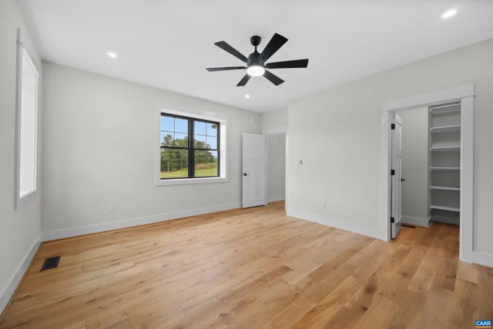Top-new construction, commanding views of the Blue Ridge Mountains, and a convenient location make this a great offering to the marketplace. This spectacular home combines traditional craftsmanship with modern innovations, using advanced building technologies. This solid, stunning, and sustainable transitional design incorporates modern building science to deliver long-term energy savings through insulated concrete construction, along with a Broan energy recovery ventilation system and a smart HVAC system, ensuring real comfort all year long. High ceilings and an open floor plan with large Pella windows create wonderful natural light and far-reaching vistas in every direction. High-quality construction and timeless design provide energy efficiency and low-maintenance living, all in one-level living. The land is open with rolling, level topography. Coyner Springs Park is nearby. Features include a gas fireplace, locally handmade mantel, engineered, wide-plank white oak flooring, Pella windows, a large soaking tub, and more. Pull-down stairs to attic storage from the main living area and garage. Country living with fabulous convenience.,Maple Cabinets,Painted Cabinets,Solid Surface Counter,White Cabinets,Wood Cabinets,Fireplace in Living Room
