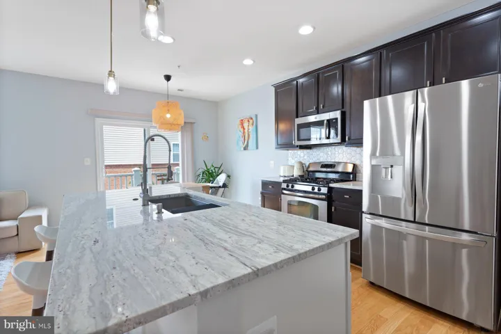 Step inside to a bright, open floor plan designed for both everyday comfort and entertaining. The fully renovated kitchen (2024) is the centerpiece of the home, featuring a sleek flat island with custom cabinetry, premium granite countertops, a stylish backsplash, freshly painted walls, and top-of-the-line stainless steel appliances. Elegant hardwood flooring, also updated in 2024, flows seamlessly through the kitchen and living areas, creating a warm and inviting atmosphere.