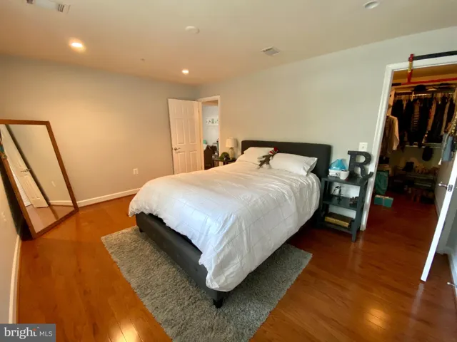 The spacious bedroom includes a walk-in closet with built-ins, and a full-size washer and dryer for added convenience. Community amenities include a pool, fitness center with full weights and yoga room, clubhouse, and landscaped outdoor areas.