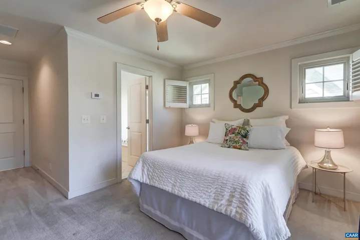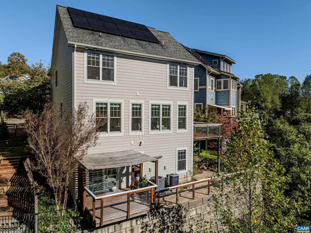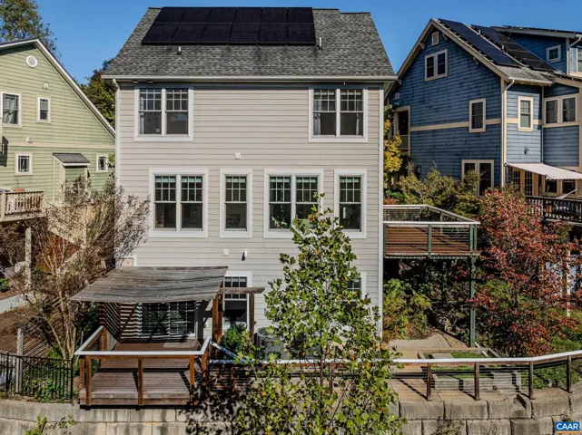 This charming home backs up to the Rivanna Trails and Moores Creek, and feels like a tranquil oasis, yet is walkable to Downtown Charlottesville, and is minutes from I64. You’ll love the seasonal mountain views that can be seen from either of two composite decks. With no HOA, this home could be a great Air BnB unit! The open floor plan of the main level includes three light-filled living spaces with a great room and dining area that flow into the practical and polished kitchen. Hardwood floors sparkle in the light from the wall of windows overlooking the natural spaces behind the home. Upstairs, the primary suite includes an ensuite bathroom with heated tile flooring, soaking tub, and separate shower. Two additional bedrooms share a full hall bathroom, and the laundry room is upstairs for convenience. A loft space upstairs makes a great space for a home office or reading nook. Enjoy even more living space with a large walk-out lower level featuring a rec room leading to a second deck with pergola and full bathroom. With solar panels to keep the energy costs low, a one car garage, and so much more, this home is a must see!,Maple Cabinets