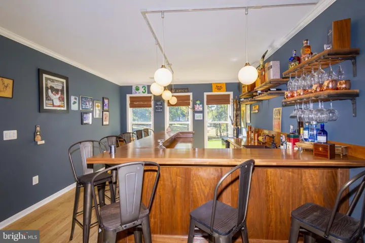 The finished walkout basement extends your living area with a spacious recreation room complete with a full bar—perfect for entertaining, game nights, or hosting guests. Step outside to the beautifully manicured backyard with a stone walkway leading to a cozy firepit area surrounded by nature. A short walk away, the shared boathouse features four powered lifts (one deeded to this property), private storage for each slip, a screened sitting area, and a designated swimming access point off the dock—perfect for summer afternoons and sunset gatherings.