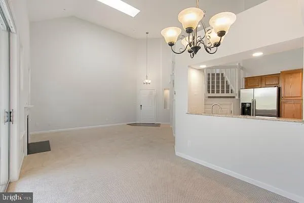 Welcome to this bright, spacious two-level condo in the heart of Kingstowne. Blending comfort with convenience, the home features an open floor plan highlighted by a dramatic skylit cathedral ceiling that fills the living spaces with natural light. The inviting living room centers around a decorative fireplace, while the adjoining dining area opens to a private deck—perfect for morning coffee or winding down in the evening.
