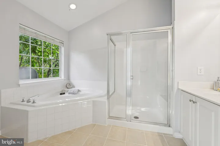 The upper level hosts the serene primary suite, complete with a spacious walk-in closet and an ensuite bath featuring dual vanities, a soaking tub, and a separate shower. Two additional bedrooms share a well-appointed hall bath, providing plenty of room for family, guests, or hobbies.