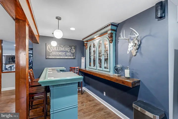 Lower Level – Home gym or bonus space, movie lounge with custom French Provincial bar and Tiffany fixture, encapsulated crawl space, workshop, and walk-out recreation room perfect for a pool or ping-pong table.