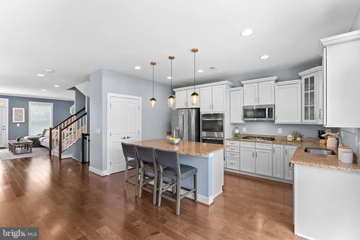Stunning, light-filled and rarely available end-unit townhome with 2600+sf of room to roam across 3 finished levels in the heart of Cascades! This pristine 10-yr young 3BR stone-front Carlyle model by M/I Homes has an open concept floor plan perfect for entertaining and relaxing. Enjoy 2 Trex decks, hardwoods on main, brand new lux carpet on upper and lower levels, all new paint throughout, 2-car garage and an extra wall of windows! The gourmet kitchen is a chef’s delight with GE Profile SS appliances including double ovens, new microwave and gas cooktop, plus upgraded vanilla cabinets, granite countertops, spacious island with pendants, coffee nook, and French door to rear deck. Flexible open floorplan with family room off the kitchen plus dining room, spacious living room and half bath all on the hardwood floor main level. The stunning primary bedroom with tray ceiling leads to the elegant primary bath with new Quartz dual sink vanity and custom tile shower. Two generous secondary bedrooms share a hall bath with dual sink vanity and spacious laundry room with cabinets completes the upper level. The finished lower level rec room with new lux carpet is a perfect place to unwind and leads to the oversized 2-car garage (504 sf!) just past the half bath and multiple closets. Enjoy all the amenities of beloved Cascades plus close proximity to Algonkian Park and the Potomac River, shops, restaurants and schools!