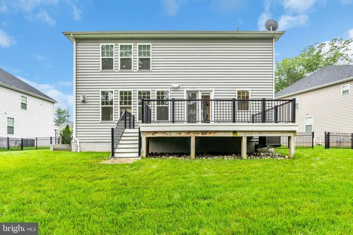 The property is situated on an exquisitely landscaped lot of over a quarter-acre, bordered by a picturesque tree-lined backdrop. Encircled by an aluminum fence, the outdoor space exudes tranquility and privacy while offering an irrigation system to maintain the lush greenery. A low-maintenance Trex deck, seamlessly accessible from the kitchen, serves as the perfect stage for outdoor gatherings or quiet evenings immersed in nature’s embrace.