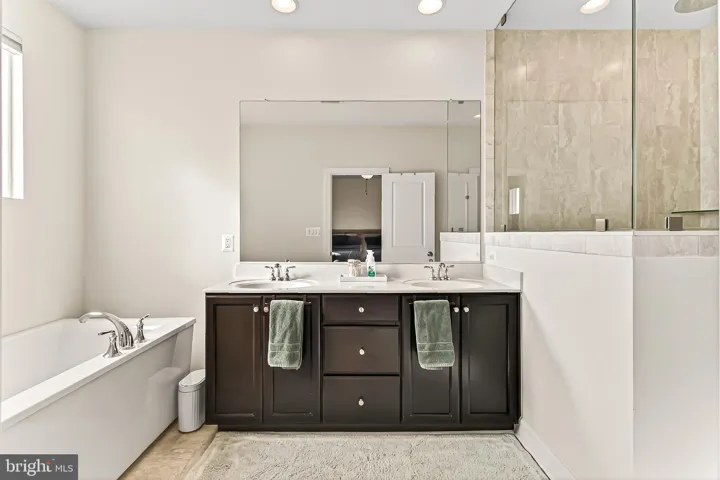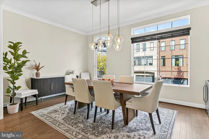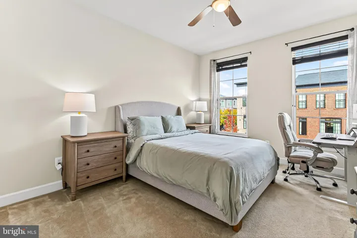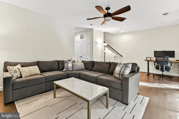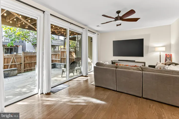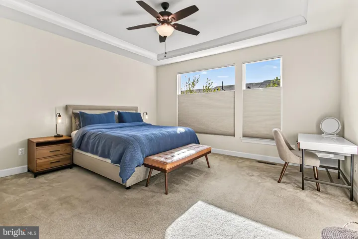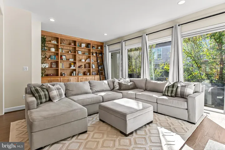 Situated in the sought after Brambleton Town Center community, this Miller & Smith luxury “Tatton” model townhome offers 3 bedrooms, 3.5 bathrooms and over 2,900 finished square feet of living space on 3 levels. The beauty begins outside with an upgraded brick front, 2-car garage, an upgraded rear Trex deck, a large covered slate patio with sitting walls, and a lush fenced backyard dotted with majestic shade trees, perfect for entertaining and outdoor relaxation. Inside, an open floor plan, high ceilings, an abundance of oversized windows, warm hardwood flooring, chic lighting, and upgrades at every turn create instant appeal. The entry level offers a wide stairway leading to a spacious rear family room with an oversize sliding door leading to fenced backyard and entertaining space. A convenient full bathroom, and an open area with closet and direct garage access rounds out this level. The main level delivers a very open concept layout featuring a light-filled living room with custom built-in bookcases with a rail and ladder, and a cozy gas fireplace for those chilly winter nights. Here, a wall of glass and expansive rear sliding door provides an open feeling and natural light and opens to the deck. The gourmet kitchen is a feast for the eyes with custom color 42” cabinets, quartz countertops, shimmering tile backsplash, and stainless-steel appliances including a gas cooktop with suspended vent hood, built in microwave and wall oven. An oversize extended island provides added space for food preparation and bar seating for entertaining. A generously sized custom pantry that provides lots of additional storage space, and a stylish powder room compliments this level. The upper level offers a luxurious primary suite located in the back of the home boasting a tray ceiling with lighted ceiling fan, wall of windows, and walk in closets equipped with container store closet organizer systems that really sets this home apart from others. The ensuite bath offers a dual sink vanity, water closet, soaking tub, and a walk-in rain shower with seamless glass enclosure. Two bright and cheerful front bedrooms share access to the well-appointed hall bath with a dual sink vanity and tub/shower. The beautifully renovated laundry room located on this level makes laundry chores a breeze to complete. Located in the amenity filled Brambletown Town Center and just minutes to shopping, dining, and entertaiment, while being a commuter’s dream being close by to Loudoun Co Parkway, Rt 50 and Washington Dulles Airport. Come see all this luxury townhome and Brambleton Town Center has to offer!