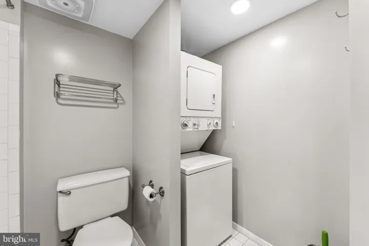 The layout provides two generous bedrooms, one with an ensuite and ample closet space with built-in shelving. The second bedroom sits opposite the hall bath, and there is a stackable washer and dryer in unit for convenience. Step outside to a private balcony, and take advantage of two parking spaces.