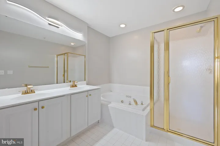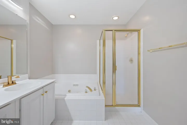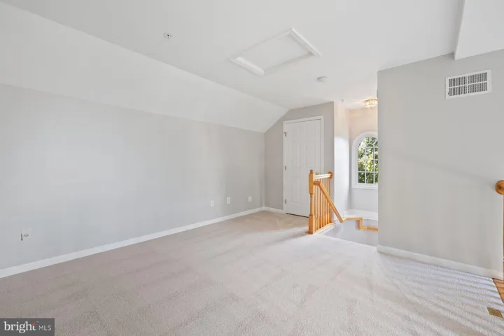 Upstairs, the primary suite impresses with vaulted ceilings, a custom walk-in closet, and a spa-like en-suite bath with jacuzzi tub, double vanity, and modern faucet and light fixtures (September 2025). Two additional bedrooms with custom closets share a full bath and linen closet. The top-level loft with closet is perfect for a home office, gym, nursery, or additional dressing room.
