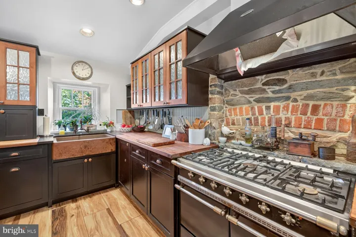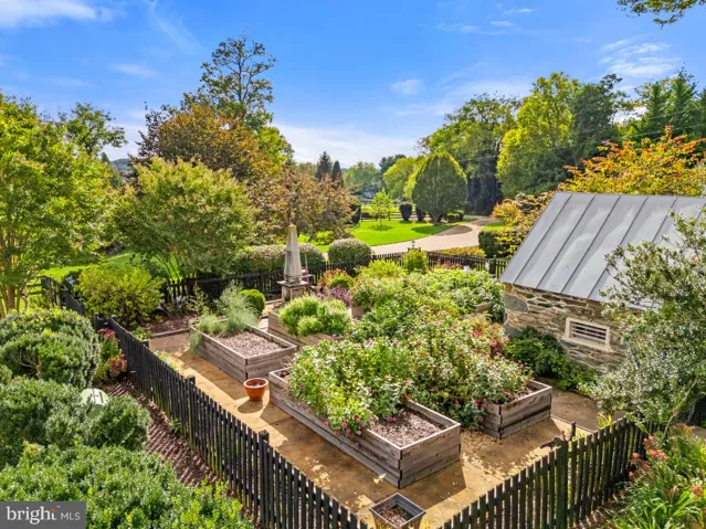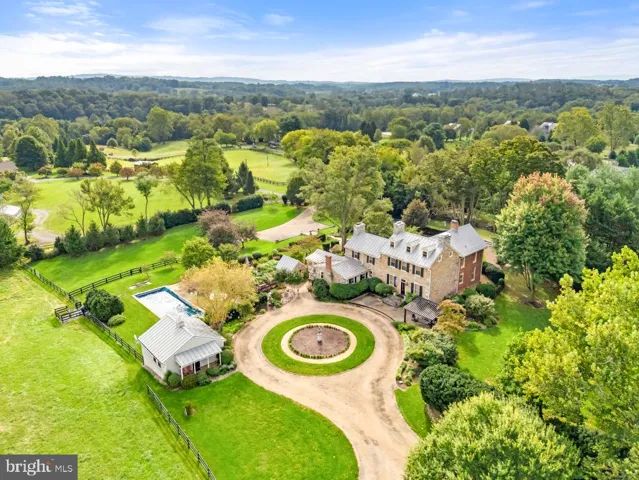 On a picturesque country lane, in the foothills of the magnificent Blue Ridge Mountains, this exquisite Quaker style stone and brick residence, circa 1780, presides over 12.7 gorgeous acres of lush fields, sweeping lawns and brilliant perennial gardens offered with two parcels. Towering trees, stone walls and breathtaking views create a magical setting for this exquisite historic home, which has been meticulously restored, beautifully updated and elegantly appointed. The manicured grounds include a charming Guest House, with a new kitchen and sparkling new bath, and a fabulous heated pool, with a stone walled fountain and fieldstone terraces, completely secluded by the gardens and mature landscaping. In addition, there is an extraordinary four bay garage, a showplace for treasured cars and an incredible workshop that is anyone’s dream. There are two impressive driveways accessing the estate. The main entrance brings one to a terraced stone walkway leading to the formal front entry and the elegant foyer of the 1850 Queen Anne style wing. High ceilings, intricate moldings, travertine flooring and a lovely oak staircase are featured here, with a guest powder room located towards the rear. To the left is the stunning formal living room with gleaming wood floors, a wood burning fireplace and multiple large windows, bathing the room in natural sun light. To the right of the foyer, one enters the handsome family room, which is part of the 1824 stone addition. When originally built, this section offered the stately front entry, which now faces the mountains and enjoys a circular drive and spectacular vistas to the West. Brilliant crystal chandeliers, crown moldings and elegant mirrors grace both of these gracious rooms. Adjacent is the cozy tea room and a rear hallway with stairs to both the upper and lower levels. This addition then opens into the original section of the residence, which dates back to 1780. Originally a two over two stone home, a wall was removed on the main level creating what is now the very charming formal dining room, with wide plank pine floors, deep set windows, a stone fireplace and doorway accessing the beautiful front gardens. From the dining room one steps down into the gourmet country kitchen, completely remodeled and boasting a fabulous Lacanche five burner gas range, new refrigerator, farmhouse copper sink, Cherry cabinets with mirrored insets and the kitchen floor has radiant heat. In 2010, a mudroom was added with wonderful pantry space, slate flooring and a covered porch, leading out to the spectacular gardens, a stone smoke house, the guest house and heated pool. From the main stairwell one ascends to the second level, and to a spacious and light filled bedroom/sitting room with an inviting brick fireplace. An elegant hall bath, a huge master bedroom with wood burning fireplace and a dressing room and custom closet built-ins are located here. From the rear stairwell, one has access to both the master bedroom and to the two rooms of the original 1780 section, now a study, full modern bath and sitting room. Continue up the staircase to the third level, featuring a study/bedroom and another full bath. The second tree lined driveway entrance, offers access to the absolutely charming and very inviting guest house, and the new custom built four bay garage. Anyone with a fondness for vehicles with either 2 or 4 wheels will appreciate the outstanding features of this very special building. Strategically located below the view shed of the home, it was built to minimize its footprint with two bays facing south and two bays facing east, joined together by a corner work area with custom built-in work counter, a wet bar and an extra wide stairway providing excellent access to second level storage. The concrete floor, with radiant heat, is coated with an epoxy finish and equipped with floor drains. With interior hot and cold water connections, cars can be washed year round.