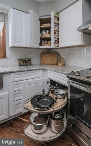 NEW KITCHEN: Upscale kitchen complete in 2022 w/ quartz counters, “pearl white shell tile” backsplash, stainless appliances (all wifi/smart), apron farmhouse sink, 30 inch chimney style range hood, soft close cabinets with countless pullouts/chef features, convection oven w/ warming zone & air fryer (don’t miss the walk-in pantry off dining area)….
