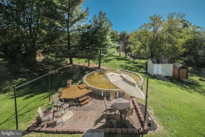The 2014 GARAGE (28×24–room for two large trucks to park and open doors) is nearly 10 ft high and was fully permitted w/ a separate 200 AMP service. It features industrial painted concrete flooring, infrared heat, conveying compressor w/air hose, abundant receptacles, two ceiling fans, storage racks, cabinets, windows and a door to yard/ Don’t miss the 24 foot wide/4.5 ft deep POOL (upgraded/all aluminum with equipment included cordless vac). Pool has an adjacent 8×8 wooden deck and 20×10 paver patio (water stays warm with full sun exposure yet large trees and curtains offer shade and privacy while swimming). Kind sellers will open/close next season for new buyers to show them how to maintain! Hardwood steps (with landing) lead to a full FINISHED LOWER LEVEL (fully permitted and DRY) w/ huge recreation room (areas for a large bar and entertainment plus a corner ventless gas fireplace), laundry room (w/ utility sink), large half bathroom, 4th bedroom and 5th guest room….