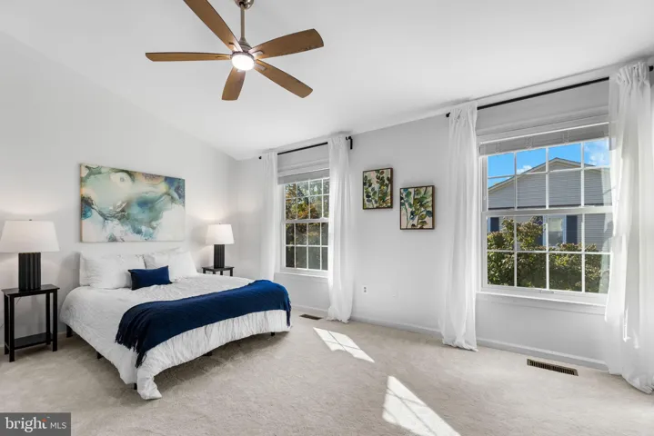 Nestled in a serene and private enclave of Kingstowne, this beautifully updated townhome has it all—with all the improvements you want, inside and out. Recent updates include a new water heater (2025), a new refrigerator (2024), an updated electrical panel, fixtures, outlets, and switches (2023), fully renovated hall bath and powder room (2023), a new gas range (2022), a new roof with gutters and downspouts (2021), a fully renovated primary bath (2021), a modern HVAC system (2020), and new windows and blinds (2019). Fresh paint and new carpet throughout, along with refreshed front landscaping, complete this move-in-ready home. The main level features gleaming hardwood floors, an updated powder room, and a bright kitchen with white cabinetry, granite countertops, tile backsplash, and stainless steel appliances. A large box window fills the space with natural light, making the kitchen inviting, and opens to a separate dining area that flows into the living room with high ceilings. French doors lead to a fully fenced backyard with tiered decks—perfect for relaxing or entertaining. Upstairs features two large bedrooms, each with vaulted ceilings and ample storage. The primary suite includes a fully renovated en-suite bath with dual vanities and a generous walk-in shower, while the second bedroom has convenient access to the updated hall bath. A linen closet completes this level. The lower level includes a large recreation room with recessed lighting and a wood-burning fireplace, plus an unfinished area with laundry, a rough-in for a future bath, and plenty of storage space. Enjoy all that the Kingstowne community has to offer—two pools, two fitness centers, tennis and pickleball courts, playgrounds, walking trails, and more—just minutes from shops, dining, and major commuter routes, including I-95, I-395, I-495, Fairfax County Parkway, and only 2 miles from Franconia-Springfield Metro. Residents love the tucked-away feel of the neighborhood, where limited through-traffic creates a quiet, private setting surrounded by nature. With thoughtful updates, stylish finishes, and a fantastic location, this Kingstowne townhome truly has it all!