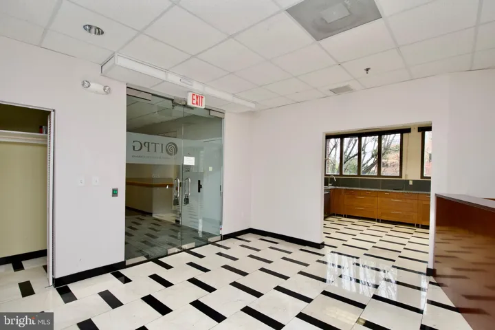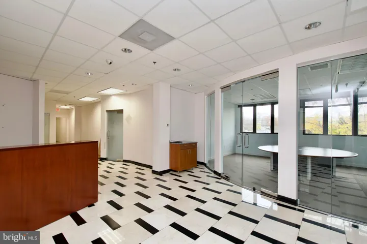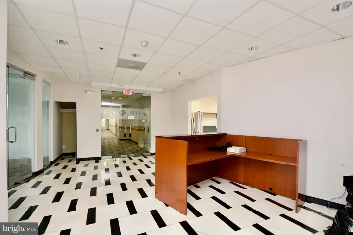 Step through double glass doors into a large, airy reception area—perfect for creating a professional first impression with clients, visitors, and staff.