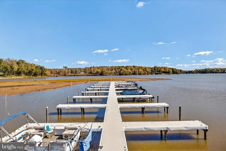 Recently constructed high-end water access home at Lake Anna, comes with private boat slip, high-speed internet, home fully furnished, and a FREE GOLF CART with purchase! Located on the expansive public side of Lake Anna – just a short boat ride from great waterfront restaurants, coffee, ice cream, and The Lake Anna Taphouse – this extremely well-maintained, single-level home offers all you’ll need in a weekend lake escape. This charming lake house is designed around a large open living space, which includes a spacious living room, separate dining area, and attractive open kitchen. The tastefully-decorated living room is anchored by a beautiful fireplace framed by a custom mantle, sturdy built-in shelving and cabinetry, and features quality furniture and home decor. The integrated kitchen offers granite countertops, a large island with bar seating, endless storage, and stainless appliances. The spacious primary bedroom suite includes a big walk-in closet with custom wood shelving, an en suite bathroom with granite countertops, double vanity, separate walk-in shower with double shower heads and seats, and a wall of built-in convenient storage closets. Down the hall, your family and guests will enjoy two additional bedrooms, each with ceiling fans and spacious closets, and then another full bathroom with granite countertops, bathtub, and shower. Additionally, this home offers a separate mudroom/laundry room with custom drop zone, as well as a large screened-in porch off the back of the home. Outside, the large wraparound porch is perfect for unwinding after a long week, as is the cozy fire pit in the large backyard. The massive detached two-car garage is perfect not only for protecting your vehicles, but also a great spot to store your watercraft, water toys, or other belongings. High speed fiber internet is provided by Fiberlync. Fantastic location: short walk to your very own boat slip (#47) in the nearby neighborhood water access area; a short boat ride to waterfront restaurants, marinas, and other waterfront entertainment spots; or take a short drive to groceries, restaurants, fast food, vet clinic, ABC, and more. And best of all, you’ll get a FREE GOLF CART with your purchase!