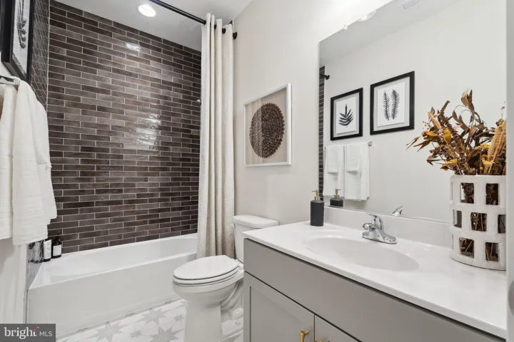 The spacious main-level primary suite features a walk-in closet and a spa-inspired bathroom with upgraded cabinetry, brushed nickel hardware, quartz countertops, and a seated shower with a frameless glass door. A second bedroom and full bath, also enhanced with upgraded finishes, provide comfort for family or guests. For added convenience, the laundry room is thoughtfully located just off the two-car garage.